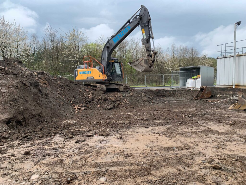 We began with a comprehensive site investigation including percolation testing, CCTV drainage surveys, and soil sampling. These works were critical to developing an appropriate SUDS strategy for the site, as surface water runoff from the new slab needed to meet strict SEPA treatment requirements.